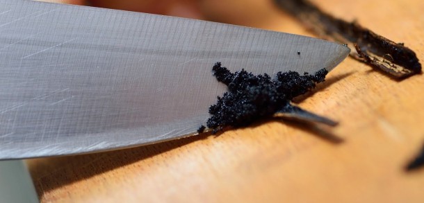 Pentru a folosi pastaia de vanilie, o taiati longitudinal si razuiti cu un cutit semintele.