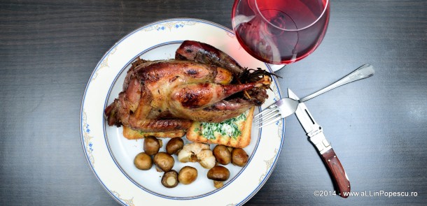 Sa va mai zic ca a fost excelent? Ca a avut un gust pe care nu l-am mai intalnit la nici o carne pana acum? Ca vinul parfumat si usturoiul copt (il vedeti in poza de mai sus) au complimentat perfect pasarea?