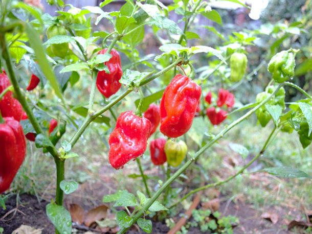 Sa va povestesc ceva. De ceva vreme (a se citi cam de prin liceu) am inceput sa mananc iute. Intai ma multumeam cu ardeii din gradina la care rodeam si semintele, apoi au venit ardeii de la Braila de la prietenul Adrian, ciusti mici si ascutite care ardeau cerul gurii ca lamele incinse in foc. Apoi am cautat sosuri si concentrate care mai de care. La un moment dat mi-am dat seama ca iuteala nu e totul, asa ca am cautat ardei iuti care sa aiba si gust. Prietenul Dragos (e bine sa ai prieteni) mi-a adus odata un rasad de ceva exotic pe care l-am plantat pe balcon, apoi in curte. Cand s-a copt a fost o revelatie – iute, iute rau, dar cu aroma de gogosar proaspat copt, foarte putin mentolat, parca si un pic acrisor.
