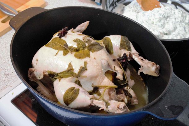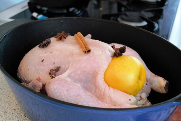 E bine sa miroasa frumos in casa cand faci mancare, asa ca anason, mar, scortisoara, toate pot fi adaugate in oala. Si nu strica nici sa ungi frumos gaina cu ceva untura de rata si poate sa o invelesti in salvie.