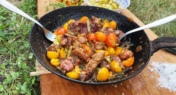 Cand te cuprinde linistea serii in sat de munte, dai o tura prin gradina si aduna de acolo ce gasesti. A fost seceta, a fost cald, dar o ceapa si-un ardel, gras, lunguiet sau iute tot gasesti. Poate si cateva rosioare uitate prin vreun boschet. Dai o tura si pe la frigider, sau pe la …
