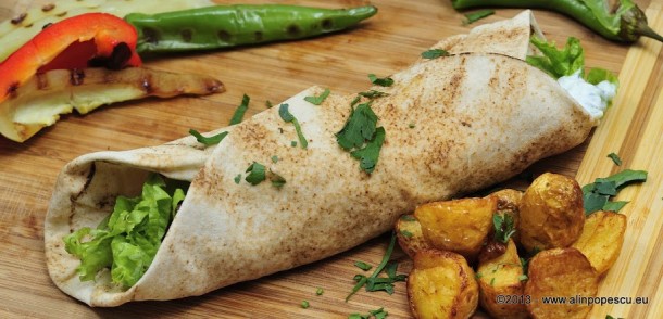 Timp de pregatire: 30 minute Ingrediente:750 g pulpe de pui dezosate 2 ardei grasi 2 ardei iuti 3 – 4 fire de ceapa 3 -4 fire de usturoi verde o legatura de patrunjel salata verde sos de soia iaurt (sau sos tzatziki) sare, piper lipii libaneze Portii: 4 Sa ne intelegem de la bun inceput: …
