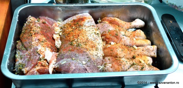 Timp de pregatire: 4 ore (include coacerea si marinarea) Ingrediente:pulpa de porc pulpe de pui legume pentru garnitura sare, piper cimbru boia usturoi praz (ceapa, morcov, etc) vin rosu demisec 2 linguri amidon (optional) V-am povestit in repetate randuri despre credinta cum ca gatitul la foc mic, pentru mult timp, are rezultate deosebite in ceea …